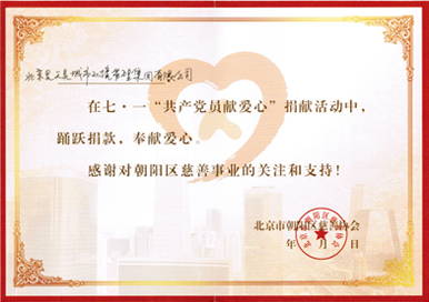 集團(tuán)公司黨支部積極響應(yīng)朝陽(yáng)區(qū)委非公經(jīng)濟(jì)工委關(guān)于開(kāi)展“共產(chǎn)黨員獻(xiàn)愛(ài)心”活動(dòng)號(hào)召,于6月18日發(fā)出獻(xiàn)愛(ài)心捐款通知。